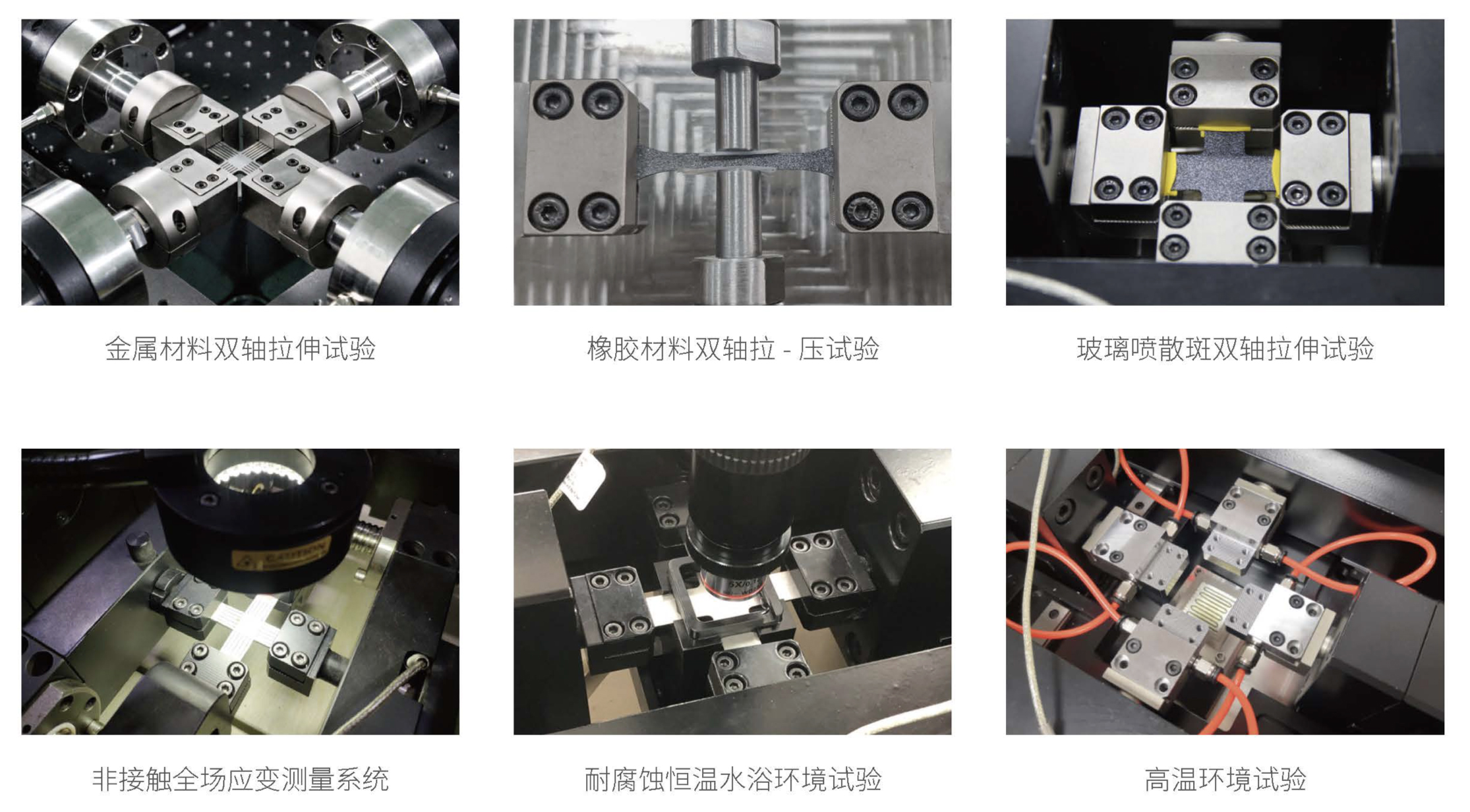 2. 試樣形式包括傳統(tǒng)啞鈴型試樣(單軸)、十字形試樣(雙軸)、雙面剪切試樣等;